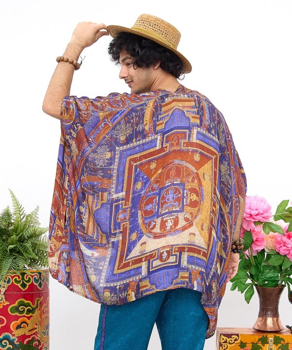 仏教美術「タンカ」を大胆にプリントしたUVカットカーディガン。ポケッタブル仕様で携帯にも便利。唯一無二の宗教モチーフが映える特別な一枚。