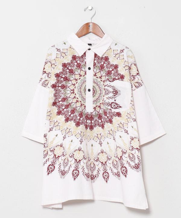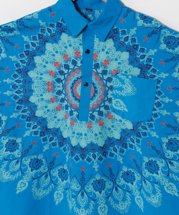 マンダラ柄を大胆に描いたインド綿プルオーバー。ゆったりオーバーサイズでリラックスコーデに最適。