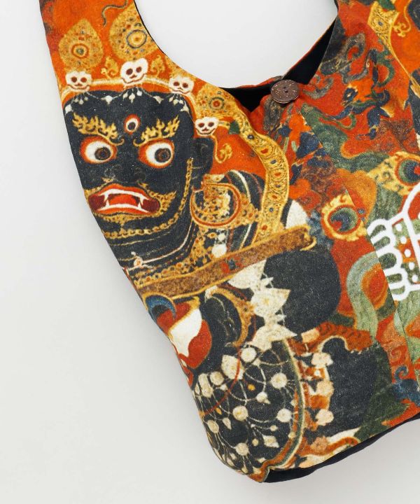 チベット仏教の仏画「タンカ」と吉祥模様の雲をモチーフにした、アート感あふれるショルダーバッグ。伝統とモダンが融合した個性的なデザインで旅気分を演出。チベット仏教のタンカとは:チベット仏教における仏や曼荼羅を描いた布製の掛け軸で、礼拝や瞑想の対象として用いられます。