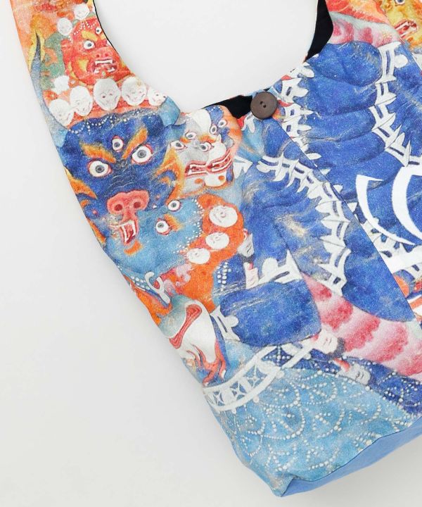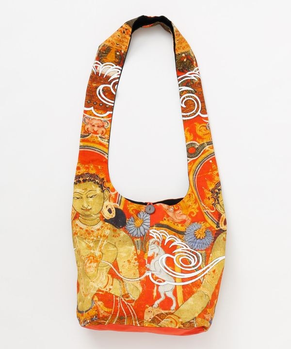 チベット仏教の仏画「タンカ」と吉祥模様の雲をモチーフにした、アート感あふれるショルダーバッグ。伝統とモダンが融合した個性的なデザインで旅気分を演出。チベット仏教のタンカとは:チベット仏教における仏や曼荼羅を描いた布製の掛け軸で、礼拝や瞑想の対象として用いられます。