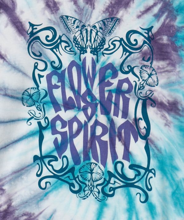 ヒッピームードあふれるタイダイ柄のタンクトップ。古着のような風合いと、脇の紐でシルエット調整できるデザイン性が魅力。蝶々・バス・きのこの3柄展開。