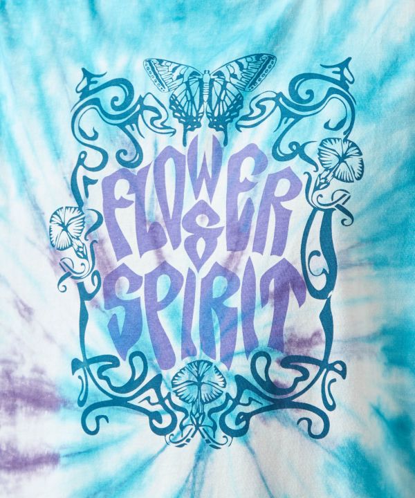ヒッピームードあふれるタイダイ柄のメンズタンクトップ。古着感のある色合いとボックスシルエットで一枚でもきまる。蝶々・バス・きのこをモチーフにした3柄展開。