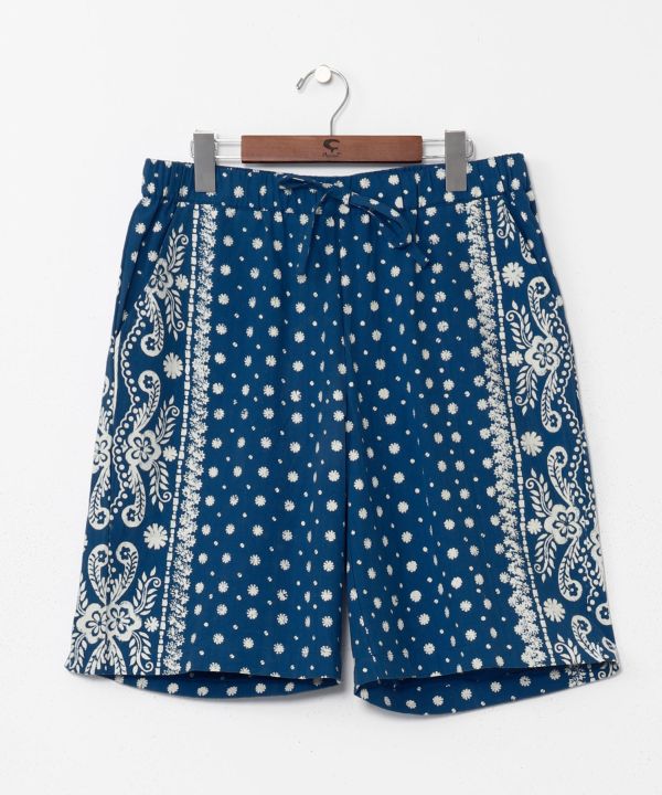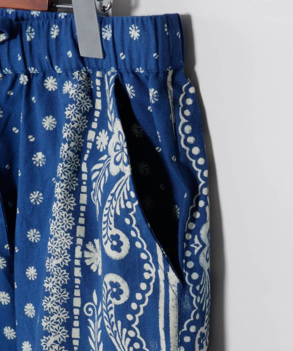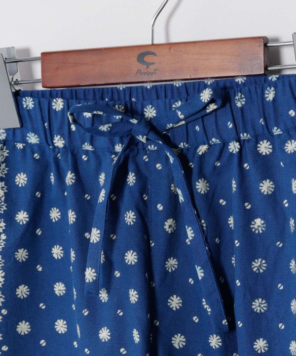 インディゴ染めとブロックプリントで仕上げたショートパンツ。孔雀や蝶などの縁起柄を施し、インド綿で快適な履き心地を実現。