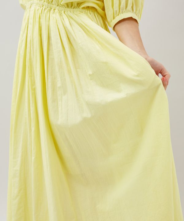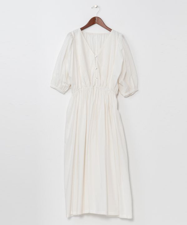 インド綿のやさしい風合いに控えめな刺しゅうを添えたワンピース。スタイルアップを演出するシルエット。シャーベットカラーでコーデを華やかな印象に。