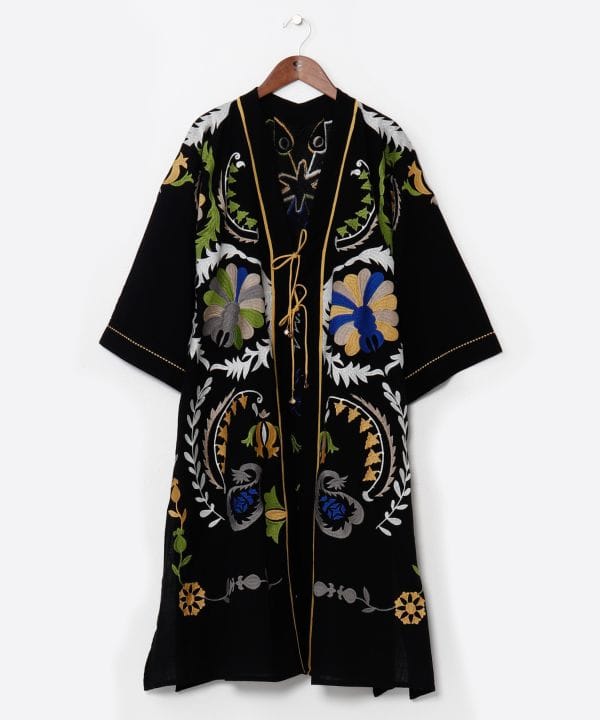 カザフスタンの民族衣装から着想を得たスザニ刺しゅうカーディガン。着物スリーブのゆったりとしたシルエットが、オリエンタルムード漂う一枚。羽織るだけで個性が光るデザイン。