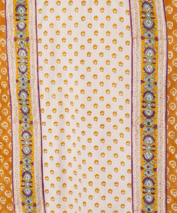 ヨーロッパのロマ民族をイメージしたブロックプリントシャツ。シルバー調ボタンがアクセントとなり、前開きは2つに1つがフェイク仕様で着脱もスムーズ。軽やかな綿素材で、着心地がよい一枚。