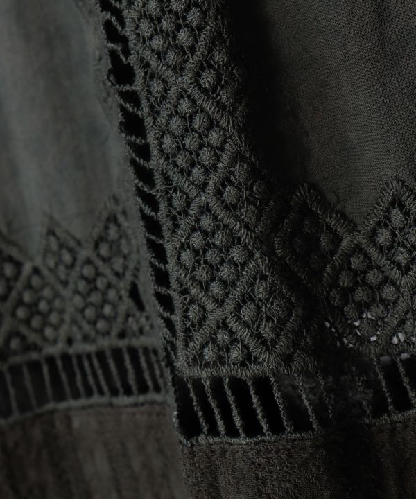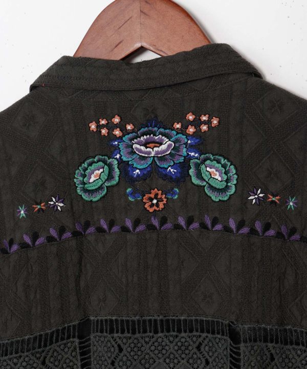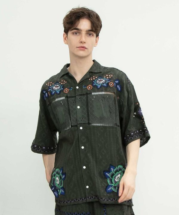 ヨーロッパのロマ文化にインスパイアされたバラ刺しゅうのメンズシャツ。ジャカードとレースを組み合わせた贅沢なディテールが魅力。