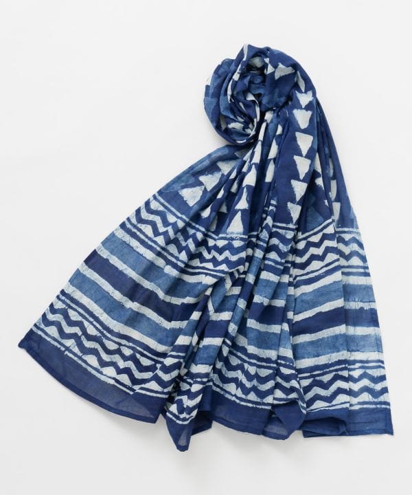 インドの伝統柄を用いた軽やかなストール。やさしい肌ざわりで通年使いやすく、首元にひと巻きするだけで旅気分に。ナチュラルなコーデとも好相性のデザイン。