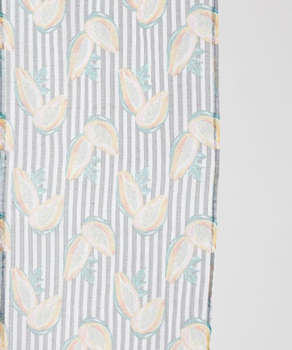 エキゾチックな色彩とフルーツ柄が目を惹くインド綿のノレン。陽気な色彩と遊び心あるデザインが空間を明るく彩り、吊るすだけでお部屋に個性をプラスしてくれる。