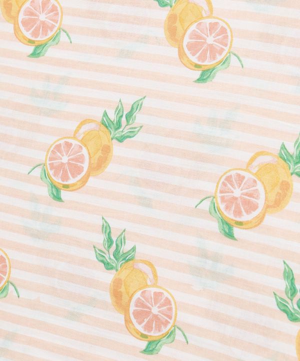 やわらかなコットン素材にフルーツ柄をのせたテーブルクロス。広げるだけで食卓がぱっと華やぎ、毎日の食事がより楽しくなる。おうち時間の気分転換にもおすすめです。