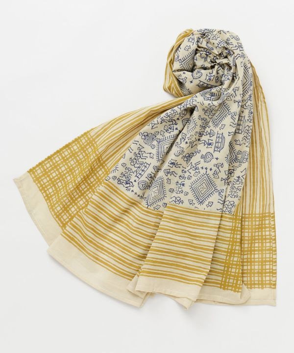 インドならではの伝統柄を使った大判ストール。ふんわり軽やかな生地感で、ひと巻きで旅するような自由な気分を演出。季節問わず活躍する万能アイテム。