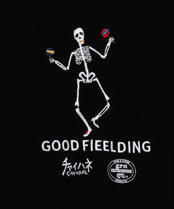 【Amina×grn】死者の日(Dia de los Muertos)をテーマにした刺しゅう×プリントTシャツ。古着風プリントにヒッピーアートを重ねたデザインが目を惹く。しっかりとした素材感で型崩れしにくく、ゆったりとしたユニセックス仕様も魅力。