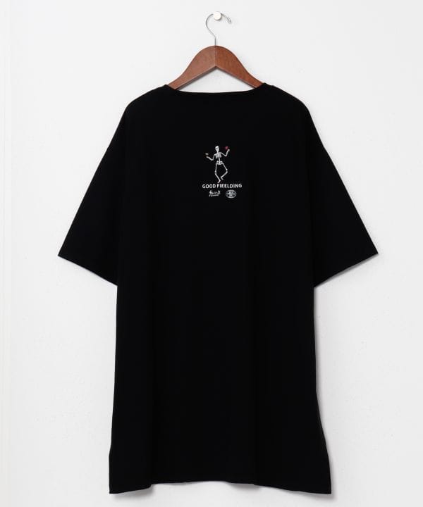 【Amina×grn】死者の日(Dia de los Muertos)をテーマにした刺しゅう×プリントTシャツ。古着風プリントにヒッピーアートを重ねたデザインが目を惹く。しっかりとした素材感で型崩れしにくく、ゆったりとしたユニセックス仕様も魅力。