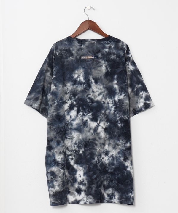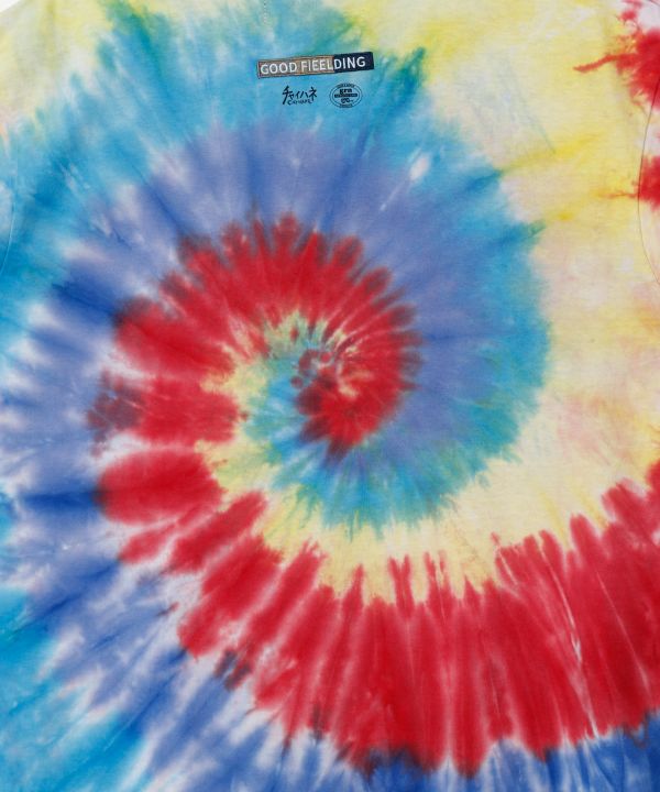【Amina×grn】死者の日(Dia de los Muertos)をテーマにした刺しゅう入りTシャツ。タイダイと演奏しながら行進しているカラベラ柄が重なりインパクト抜群。型崩れしにくい素材感とゆったりシルエットも魅力。