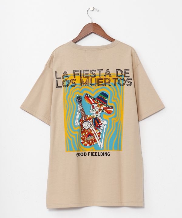 【Amina×grn】死者の日をテーマに、カラベラを刺しゅう&プリントした贅沢な一枚。ゆったりしたシルエットとしっかり素材でユニセックスに着られます。
