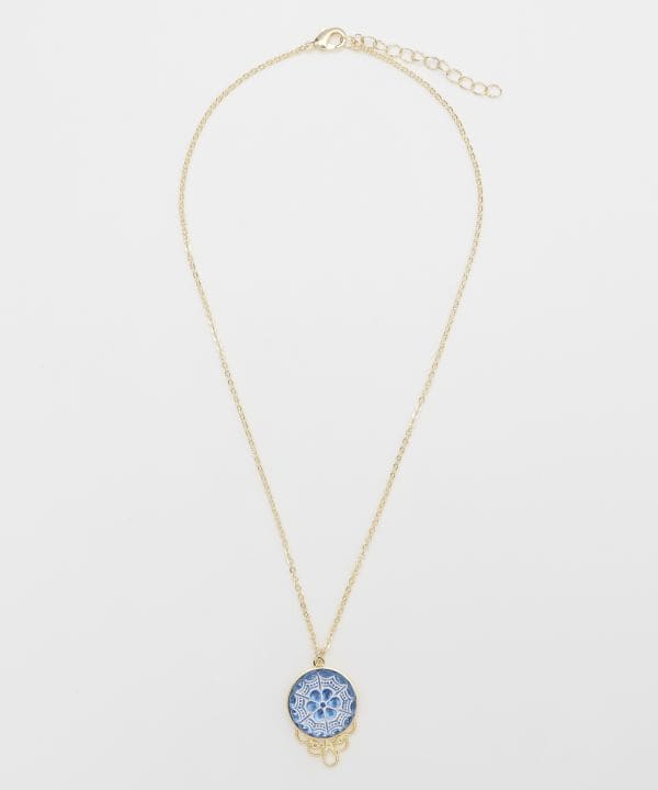 チェコボタンの魅力をそのままに仕立てたネックレス。透けるガラスと金属のコントラストが美しく、デコルテに優雅な彩りを添えます。