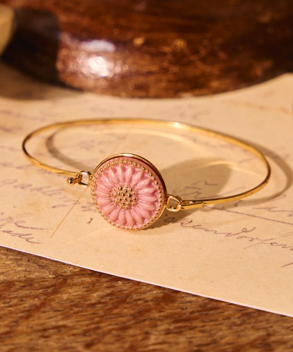チェコガラスのボタンがきらめくブレスレット。ゴールドメッキと組み合わせたクラシカルなデザインで、手元に上品なアクセントをプラス。