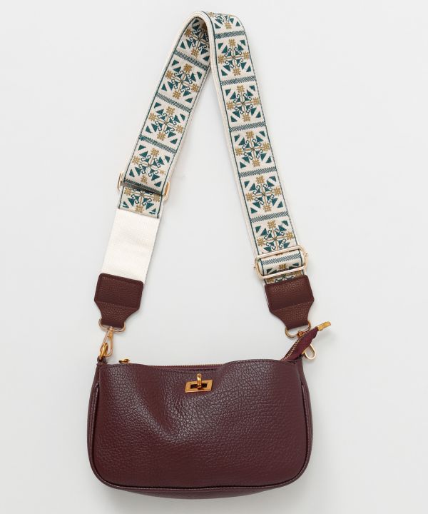 ルーマニア風のタイルをモチーフとしたクロスステッチの刺しゅうと、ウクライナ風の花刺しゅうをあしらったショルダーバッグ。民族調の色づかいがアクセントになり、ベルトは取り外し可能でクラッチ風にも使えます。