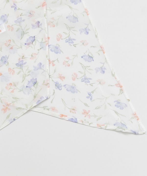 リボンタイプの細めのストールは、首元に巻いたりバッグに結んだりと多彩にアレンジ可能。軽やかな素材感と繊細な柄で、コーディネートにさりげない華やかさを添えます。