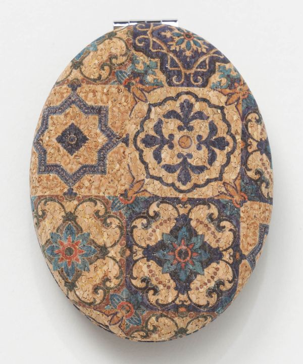 コルク素材にレトロな花柄をあしらったリエージュミラー。片面は拡大鏡仕様でメイク直しにも便利。旅先にも携帯しやすいコンパクトサイズです。