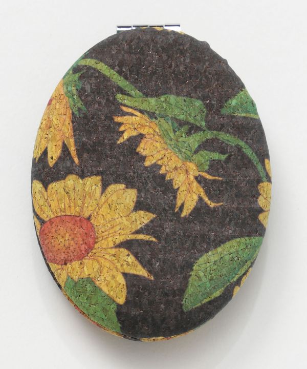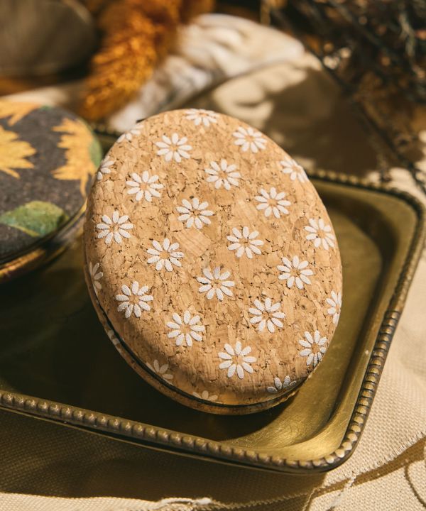 コルク素材にレトロな花柄をあしらったリエージュミラー。片面は拡大鏡仕様でメイク直しにも便利。旅先にも携帯しやすいコンパクトサイズです。