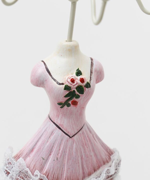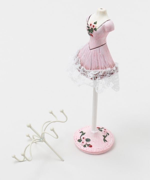 トルソー型のドレススタンドは、華やかな衣装をまとった可愛らしい佇まい。ピアスやリングを美しく飾れ、ドレッサー周りのアクセントにもぴったり。