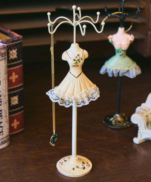トルソー型のドレススタンドは、華やかな衣装をまとった可愛らしい佇まい。ピアスやリングを美しく飾れ、ドレッサー周りのアクセントにもぴったり。