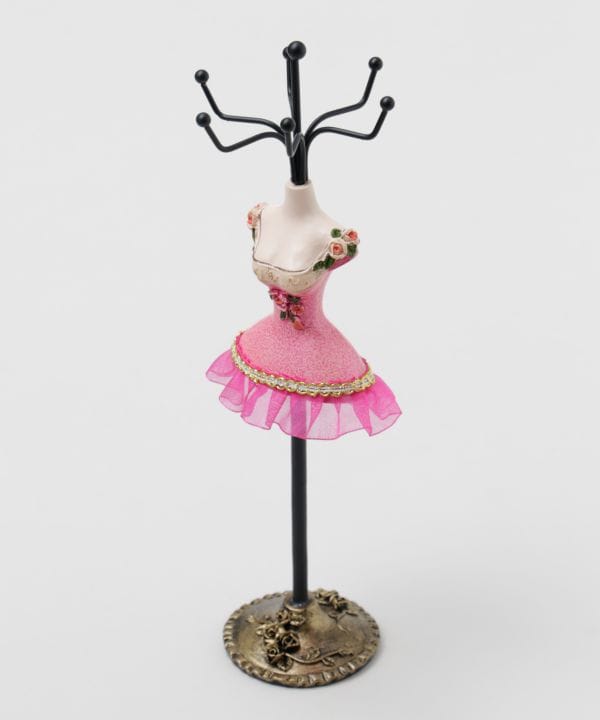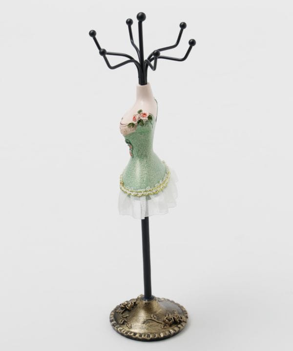 ミニサイズながらも存在感あるミニドレススタンド。繊細な装飾が印象的で、お気に入りのアクセサリーを引き立てるインテリアアイテムです。