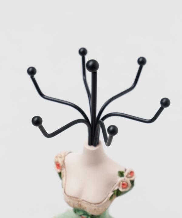 ミニサイズながらも存在感あるミニドレススタンド。繊細な装飾が印象的で、お気に入りのアクセサリーを引き立てるインテリアアイテムです。