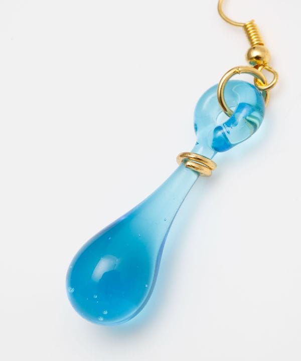 耳元で揺れるしずく型ヴェネチアングラスが印象的なピアス。鮮やかな彩りと光の反射が美しく、身に着けるだけで装いがぱっと華やぐアート感あふれるアイテム。
