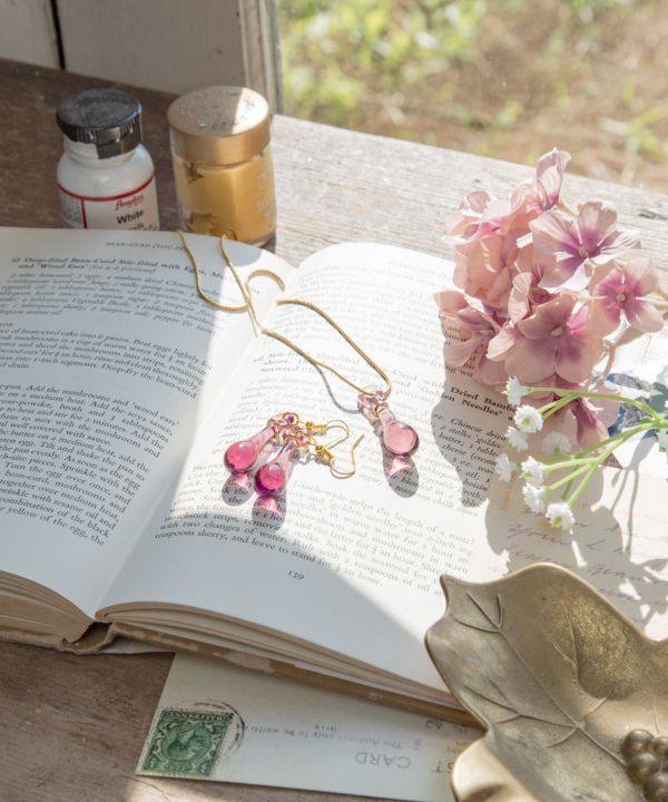 耳元で揺れるしずく型ヴェネチアングラスが印象的なピアス。鮮やかな彩りと光の反射が美しく、身に着けるだけで装いがぱっと華やぐアート感あふれるアイテム。