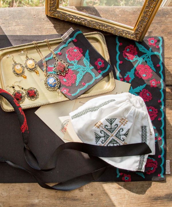ルーマニア刺しゅうをイメージした、華やかな模様が目を惹くシュシュヘアゴム。大きめサイズでまとめ髪のアクセントにぴったりです。
