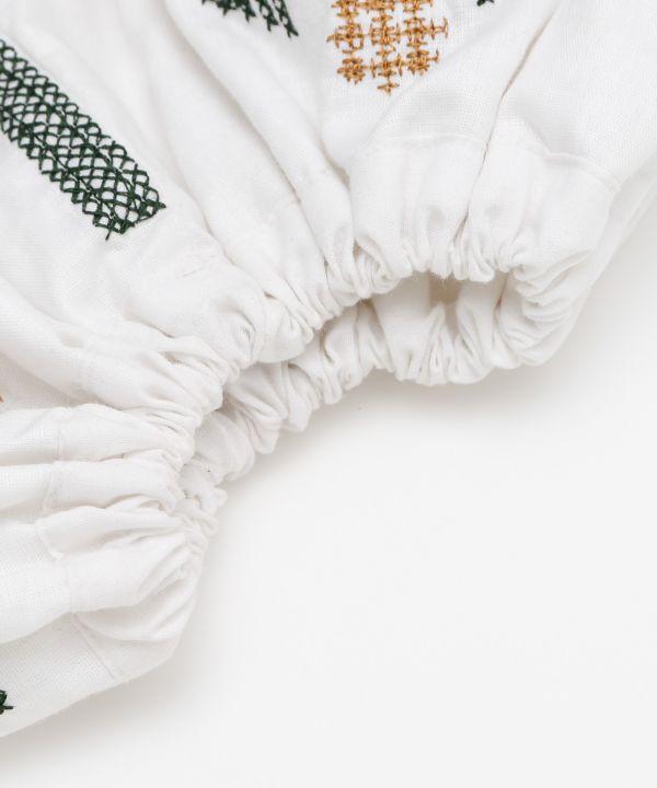 ルーマニア刺しゅうをイメージした、華やかな模様が目を惹くシュシュヘアゴム。大きめサイズでまとめ髪のアクセントにぴったりです。