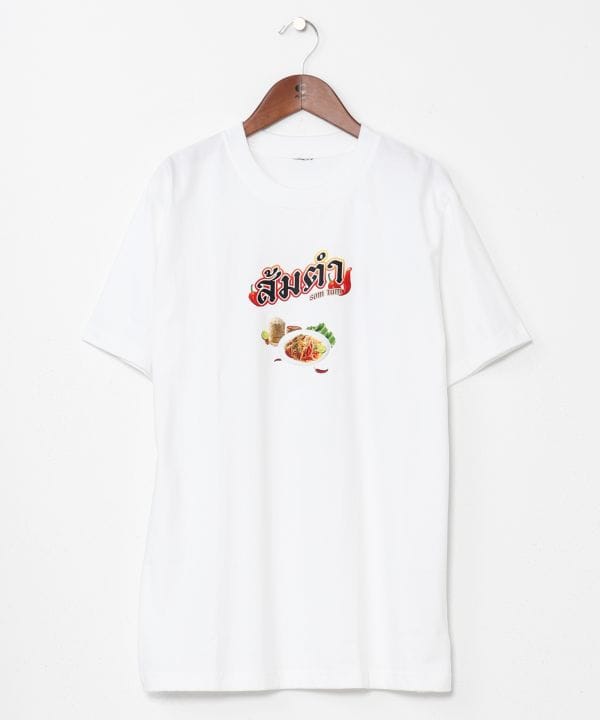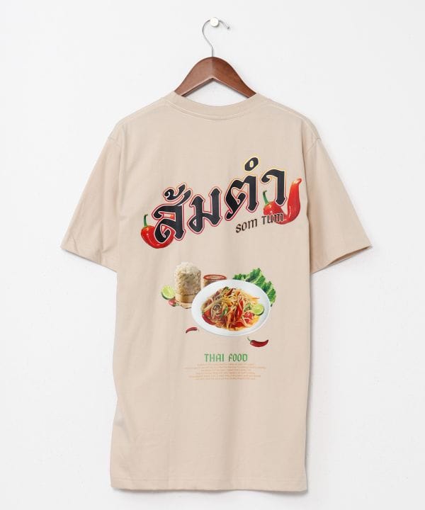 【タイ直輸入】タイ料理「ソムタム」をモチーフにした個性派Tシャツ。エスニック好きにはたまらない遊び心あるプリントデザイン。男女問わず着られるシルエットで、ギフトにも喜ばれるユニークな一枚。
