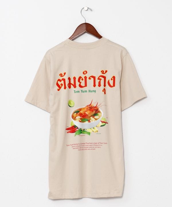 【タイ直輸入】「トムヤムクン」をテーマにしたユニークなプリントTシャツ。エスニック料理をファッションに取り入れた、他にはない個性が光るデザイン。男女問わずカジュアルに着られるおすすめアイテム。
