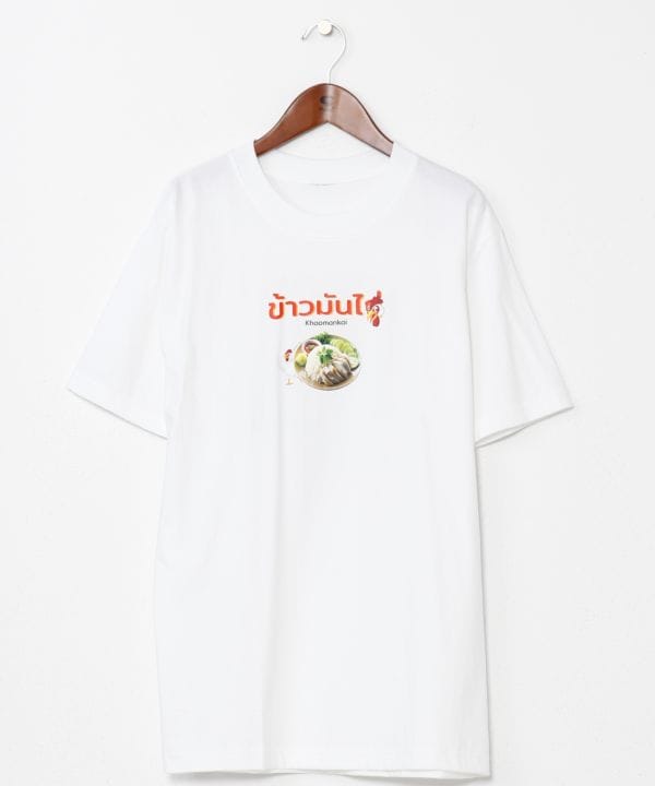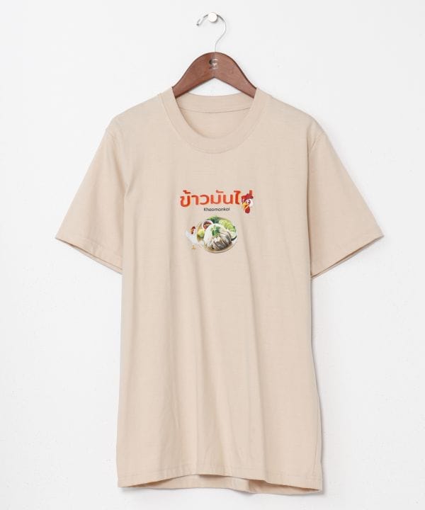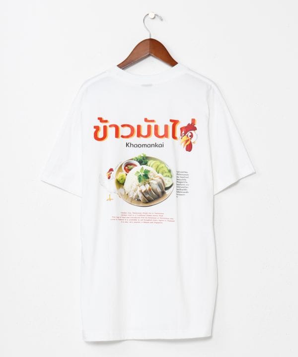 【タイ直輸入】カオマンガイのグラフィックが目を惹くメンズTシャツ。エスニックフード好きにはたまらない、ユニークな一枚。男女問わず着られるデザインで、日常のコーデに遊び心をプラス。