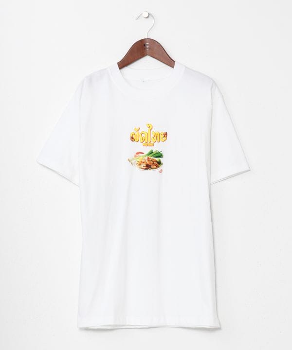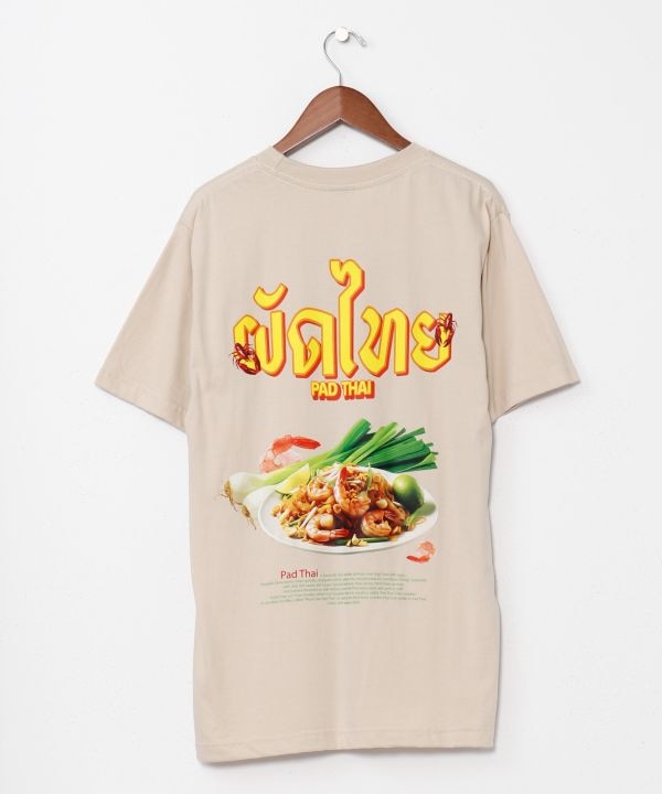 【タイ直輸入】パッタイをモチーフにしたユニークなメンズTシャツ。前後にプリントされたデザインが、エスニックフードマーケットの雰囲気を演出。男女問わず着用でき、話題性も抜群。他では出会えない個性派Tシャツ。