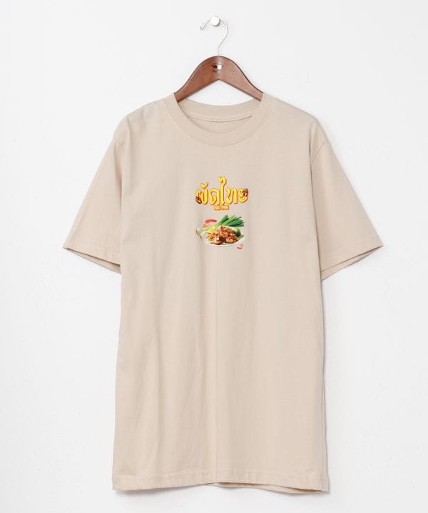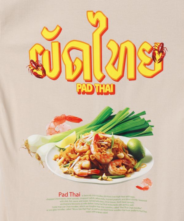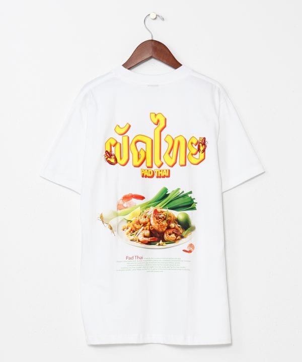 【タイ直輸入】パッタイをモチーフにしたユニークなメンズTシャツ。前後にプリントされたデザインが、エスニックフードマーケットの雰囲気を演出。男女問わず着用でき、話題性も抜群。他では出会えない個性派Tシャツ。