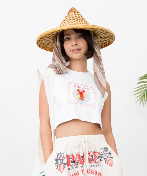 【タイ直輸入】ユーモラスな食材柄が目を惹くレディースタンクトップ。ロブスターや野菜など、くすっと笑える柄でコーデに遊び心をプラス。