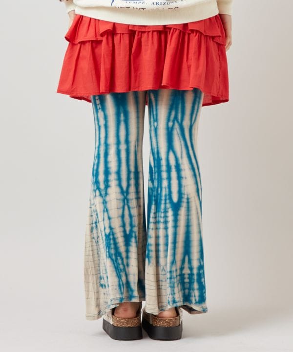 【タイ直輸入】タイの絞り染めが印象的なレディースパンツ。伸縮性のあるレーヨン素材で快適な着心地。裾広がりシルエットで脚長効果。コーデのアクセントに。※タイダイ染めの特性上、色の出方や風合いが一つ一つ異なります。