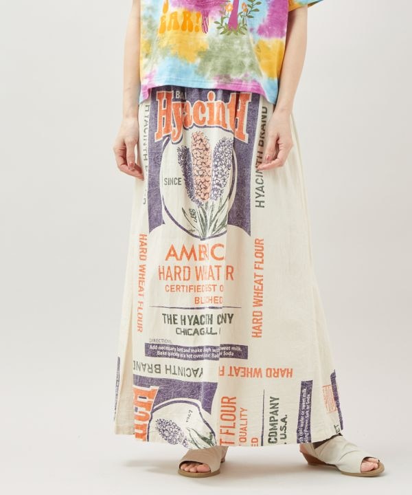 【タイ直輸入】タイの広告デザインを活かしたロングスカート。柔らかく肌なじみの良いタイコットンを使用。ワイドシルエットで動きやすく、ラフに穿くだけでエスニックな雰囲気が完成。紐調整可。