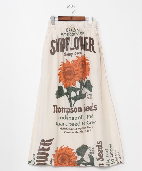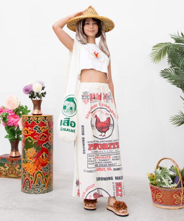 【タイ直輸入】タイの広告デザインを活かしたロングスカート。柔らかく肌なじみの良いタイコットンを使用。ワイドシルエットで動きやすく、ラフに穿くだけでエスニックな雰囲気が完成。紐調整可。
