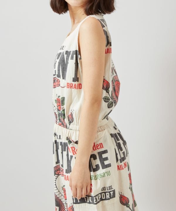 【タイ直輸入】鮮やかな広告柄が全面に施されたジャンパースカート。カジュアルでポップなテキスタイルが存在感を放ち、一枚でコーデが完成。他とは違う個性派デザインを楽しみたい方におすすめ。