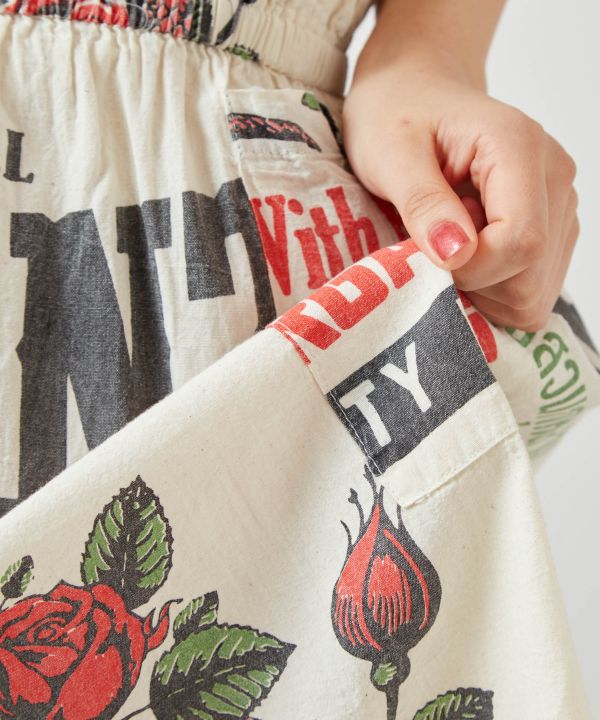 【タイ直輸入】鮮やかな広告柄が全面に施されたジャンパースカート。カジュアルでポップなテキスタイルが存在感を放ち、一枚でコーデが完成。他とは違う個性派デザインを楽しみたい方におすすめ。