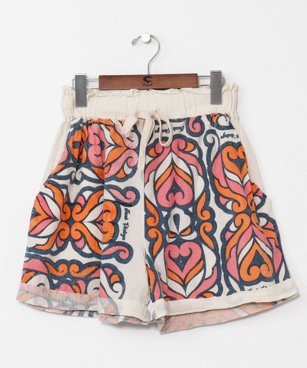 【タイ直輸入】タイの広告をプリントしたユニークなデザインが魅力のハーフパンツ。風合いの良いタイコットンで涼しく快適。存在感のある柄でトップスを選ばずコーデの主役に。ウエスト紐調整可。