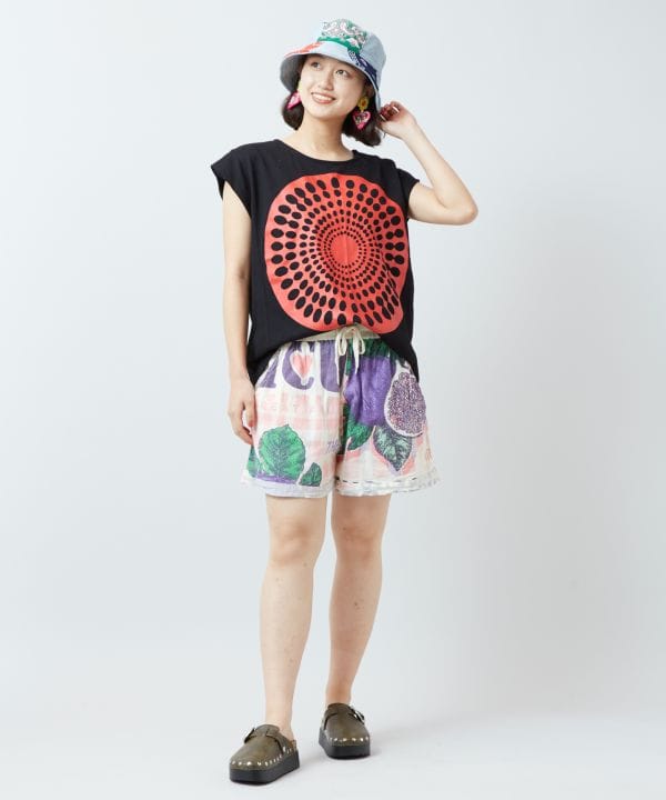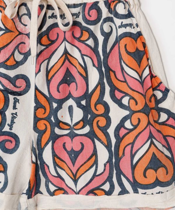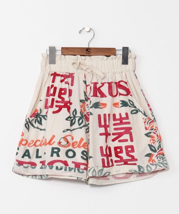 【タイ直輸入】タイの広告をプリントしたユニークなデザインが魅力のハーフパンツ。風合いの良いタイコットンで涼しく快適。存在感のある柄でトップスを選ばずコーデの主役に。ウエスト紐調整可。