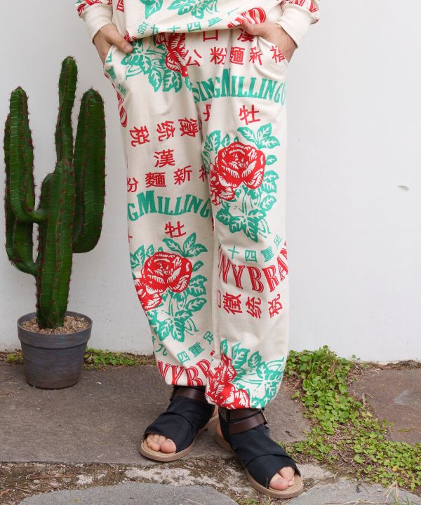 【タイ直輸入】広告柄が目を惹くスウェットメンズパンツ。柔らかい肌触りと裾リブでリラックス感のある履き心地。個性的でラフなコーデが楽しめる、唯一無二のデザイン。