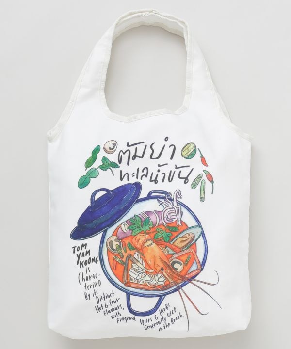 【タイ直輸入】エスニックフードをモチーフにしたデザインバッグ。パッカブル仕様で小さく丸めて持ち運びも簡単。タイの屋台気分を楽しめる遊び心あふれるアイテム。
