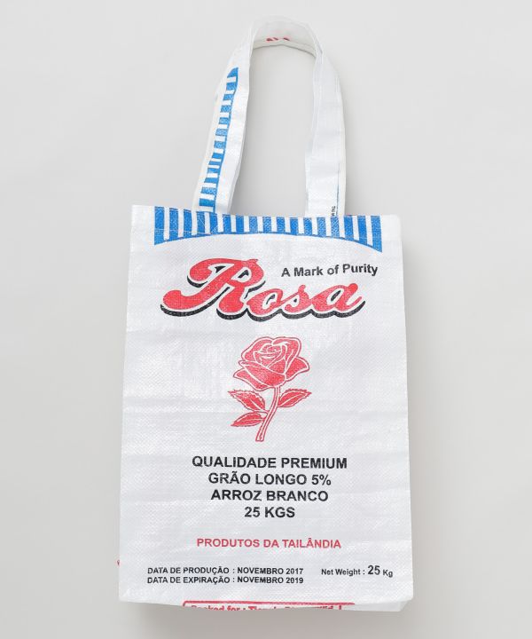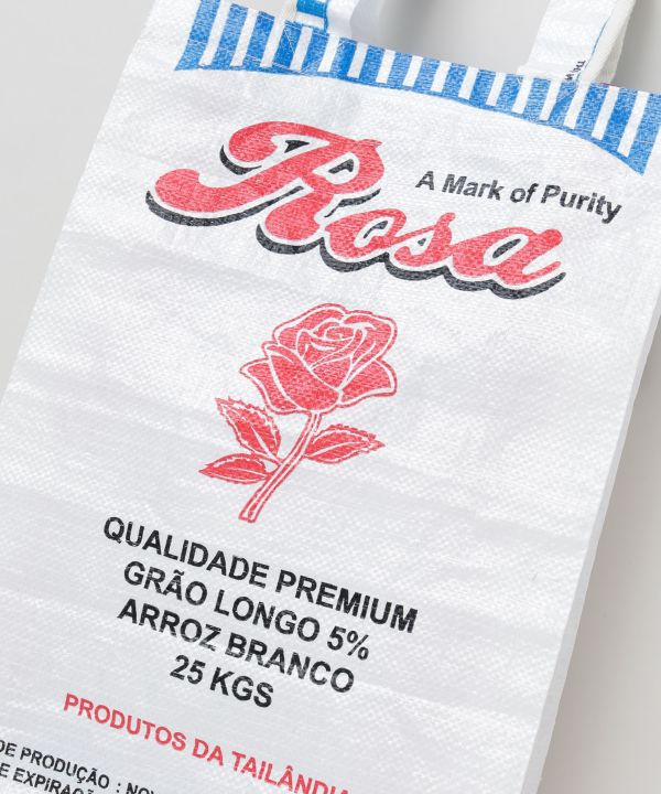 【タイ直輸入】タイの米袋を再利用したトートバッグ。軽くて水に強く、アウトドアやフェスにぴったり。エコでユニークなデザインが魅力のサステナブルアイテム。
