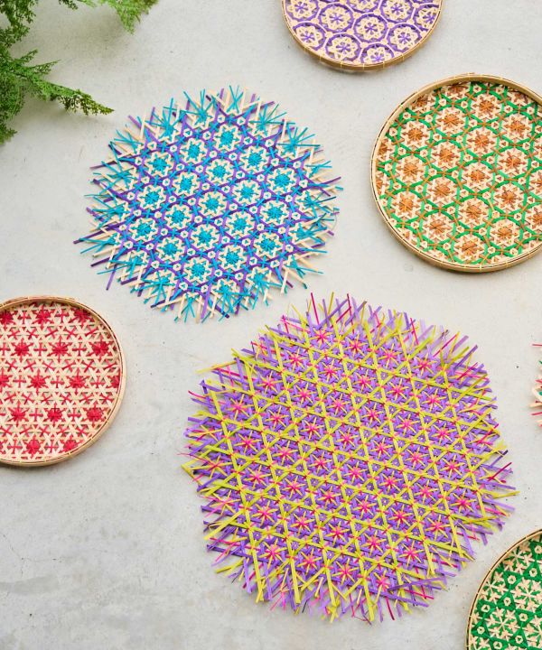 【タイ直輸入】手作業で丁寧に編まれたランチョンマット。朝食のプレートやティータイムに敷くだけで、食卓がぱっと華やぎます。※柄が一つ一つ異なるアソート商品です。※一点をお届けします。